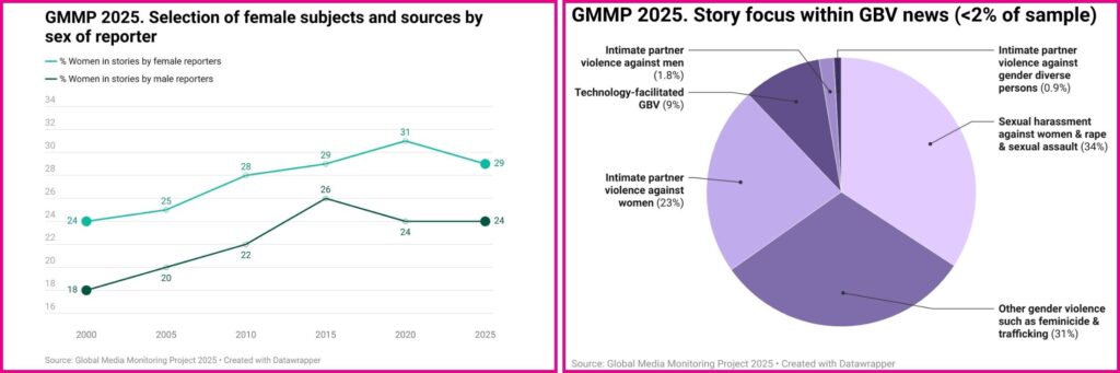Particularly concerning are the GMMP 2025 findings on coverage of gender-based violence (GBV), Macharia said. Less than 2% of news articles deal with this fundamental violation of human rights that affects one in three women and girls worldwide.